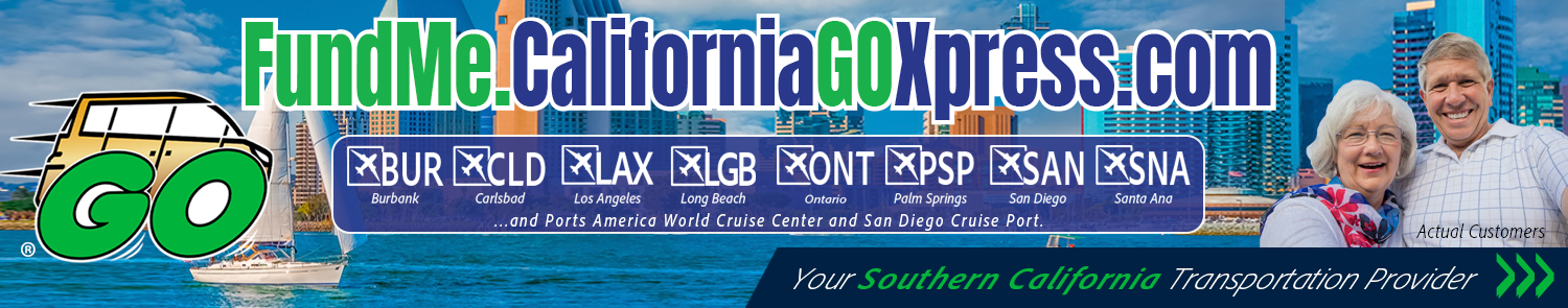 We are a pre-arranged pre-paid door-to-door transportation service serving both air and cruise ports of Southern California, including Burbank (BUR), Carlsbad (CLD), Los Angeles (LAX), Long Beach (LGB), Ontario (ONT), Palm Springs (PSP), San Diego (SAN) and Santa Ana-John Wayne (SNA) airports, plus the Los Angeles Ports America World Cruise Center and the San Diego Cruise Port. We operate 24 hours a day, 7 days a week. Our vehicles are constantly cleaned, mechanically scheduled, properly insured, and our drivers are certified with the State (TCP: 42538-P) to provide you a less stressful and relaxing way to travel. Come join us. We look forward to meeting you and getting you to where you want to GO!